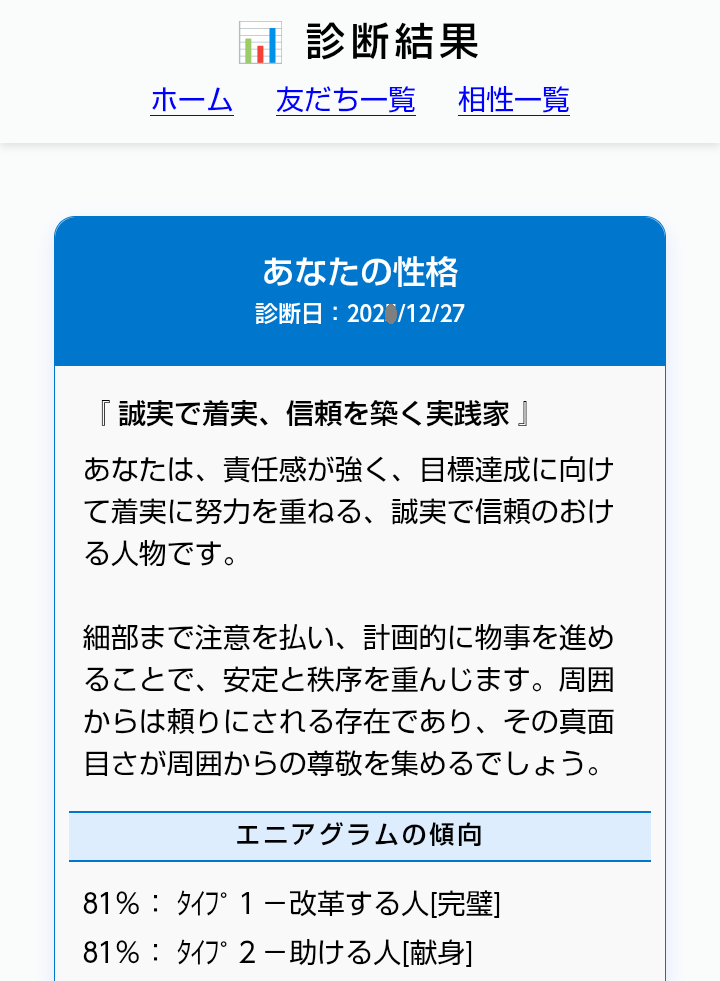 友だちの性格-診断結果