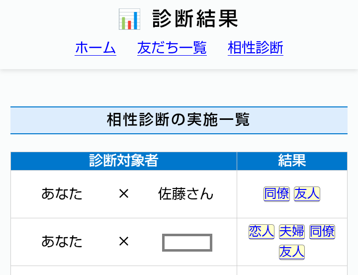 友だちの診断一覧へ移動する |