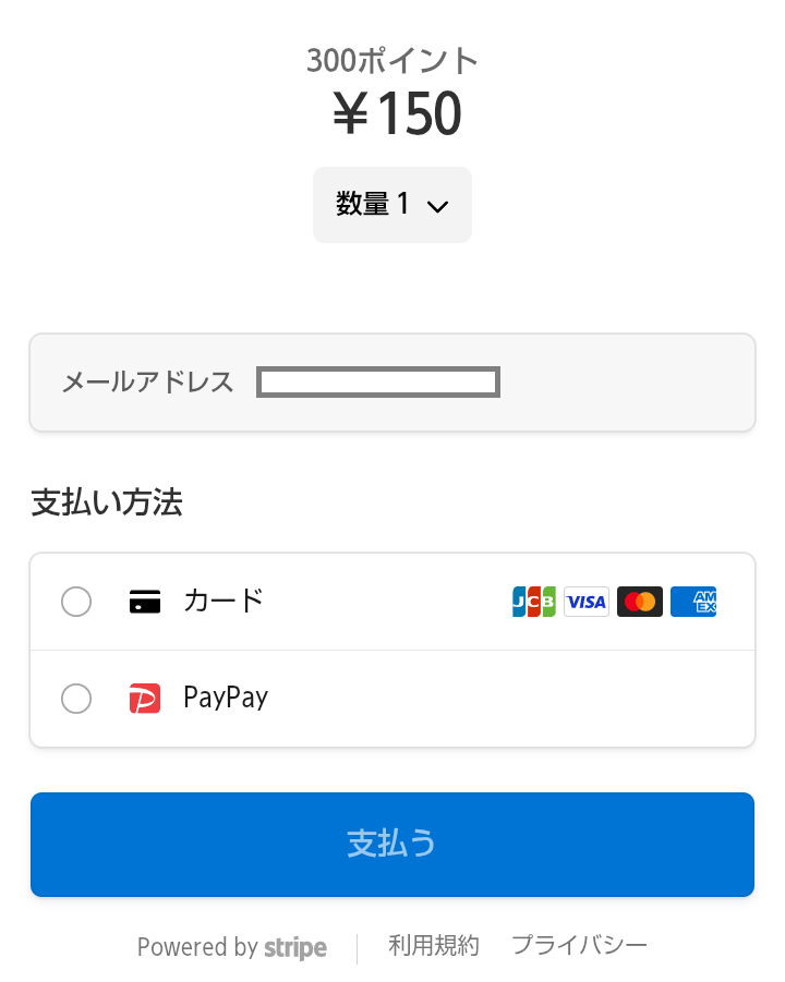 購入する商品のボタンをクリックして、購入手続きを始める。